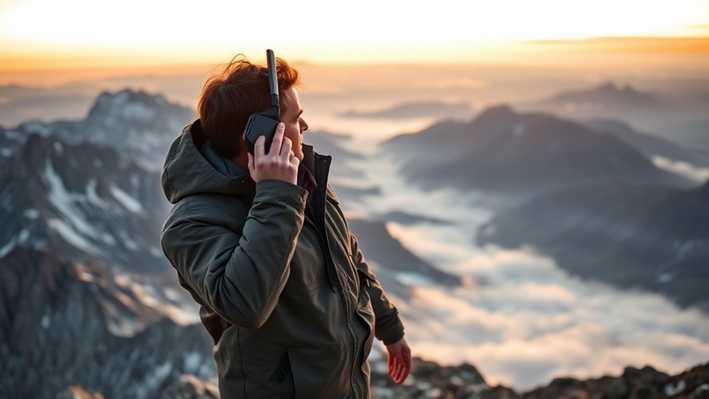Ironically, satellite texting is surprisingly reliable during emergencies, especially when your satellite signal strength is strong. You can count on it to send crucial messages even when cellular networks fail. Just make certain you follow emergency communication protocols and keep your device properly configured. While no technology is perfect, satellite messaging often outperforms traditional methods in remote or disaster-stricken areas, giving you a lifeline when others can’t.