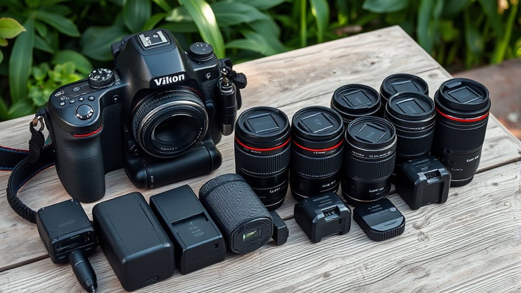 Think of your gear like a lifeboat—having backups keeps you afloat when the unexpected hits. I once relied on a spare power bank during a vital outdoor shoot, and it saved the day when my main device died. Don’t wait until you’re stranded; investing in backup gadgets is like carrying a safety net. With the right backups, you’ll stay prepared, confident, and ready to capture every moment, no matter what surprises come your way.