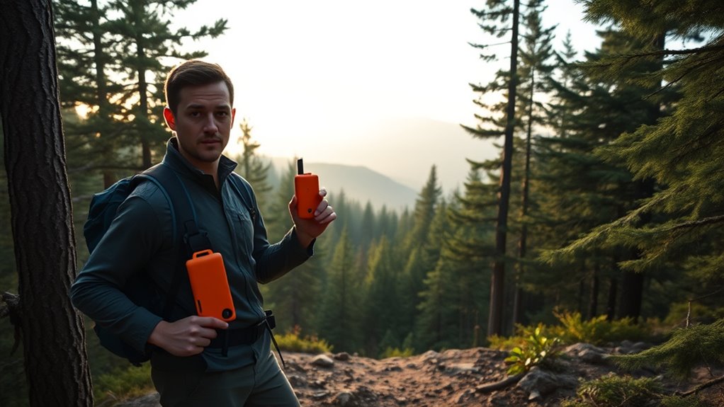 When emergencies strike unexpectedly, having a dedicated personal safety device can be a lifesaver. Wildlife encounters can escalate quickly, so carrying a device with a loud alarm or deterrent can help you ward off animals and draw attention if needed. Weather alerts are equally crucial; many safety devices provide real-time updates on storms or sudden changes, giving you time to seek shelter. Some devices also include GPS tracking, allowing rescuers to locate you promptly in an emergency. Additionally, understanding modern safety technology can help you choose the most effective tools for your needs. For example, selecting devices with reliable communication features ensures your signals are transmitted clearly even in remote areas. Being aware of personal safety protocols can further enhance your preparedness and response strategies. Incorporating emergency communication devices, such as satellite messengers or two-way radios, can significantly improve your ability to call for help when traditional networks are unavailable. Investing in devices with solar charging capabilities can also ensure your safety tools remain powered during extended trips. By investing in these tools, you enhance your preparedness for unexpected situations. Whether facing wildlife or severe weather, these personal safety devices ensure you’re better equipped to respond quickly and stay safe during your solo camping adventures.