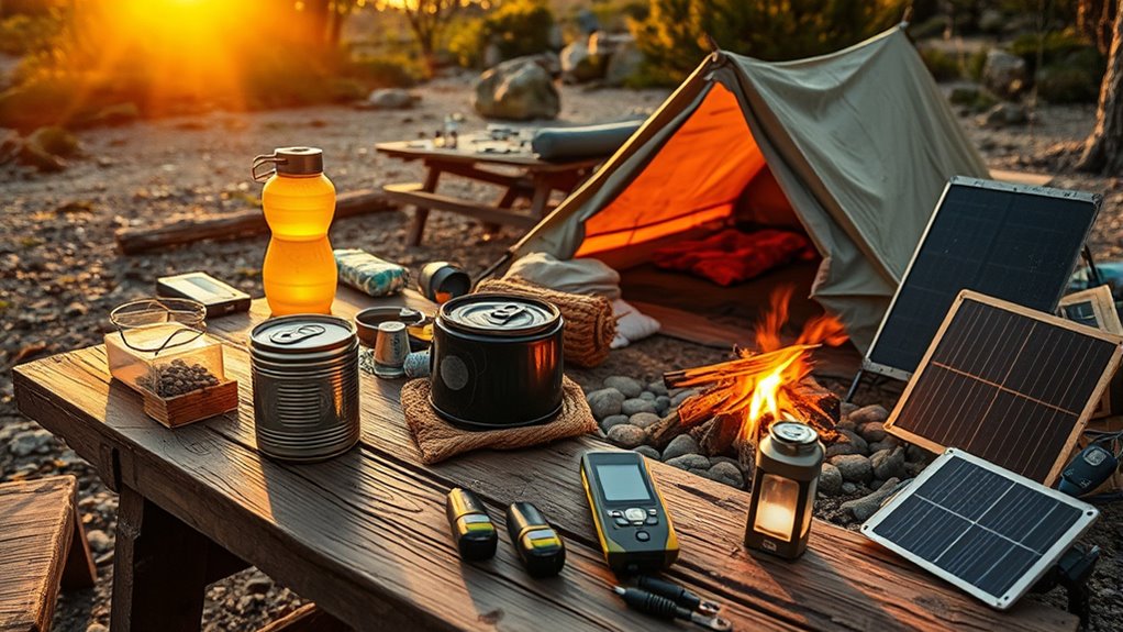 Remember, safety comes first—an ounce of prevention is worth a pound of cure. Your DIY hacks can handle basic needs, but gadgets often enhance safety during wildlife encounters or emergencies. Using tech like GPS devices or emergency beacons enhances your emergency preparedness, while improvised solutions might not be reliable enough in critical moments. Balancing both ensures you stay safe and prepared, adapting to situations with confidence and resourcefulness.
