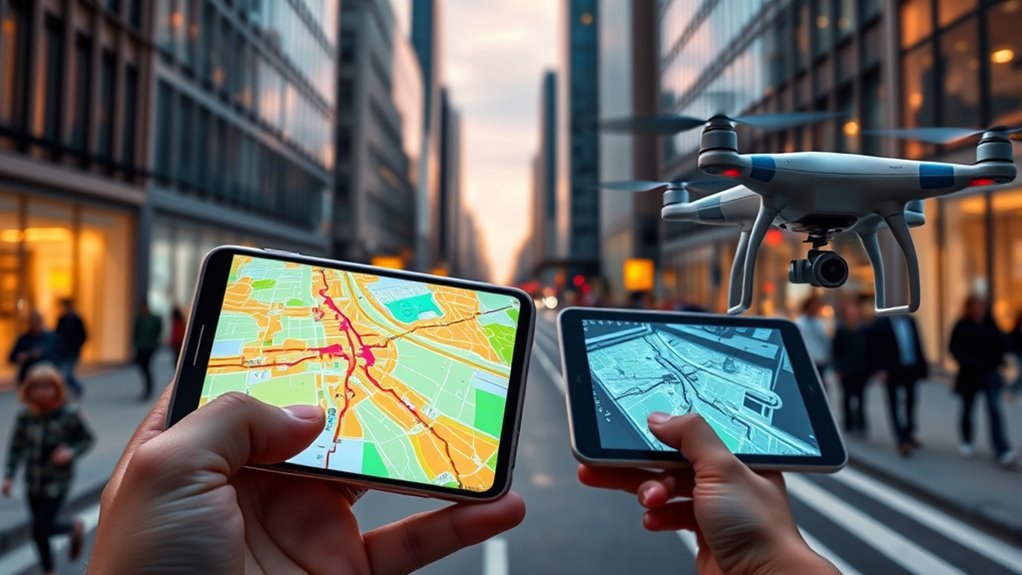 Incorporating tech into your emergency plans also involves understanding how to interpret alerts and updates from navigation apps. Many apps provide notifications about hazards, road closures, or weather conditions that could impact your escape. Keeping your device charged and having portable power sources ensures you stay connected when it matters most. It’s essential to keep your apps updated so you benefit from the latest features and data. During safety drills, simulate real scenarios by following app-guided routes, experimenting with different options to see how they perform under stress. This practice boosts your confidence and ensures that when an actual emergency happens, you’re not fumbling with unfamiliar technology but instead responding swiftly and effectively.