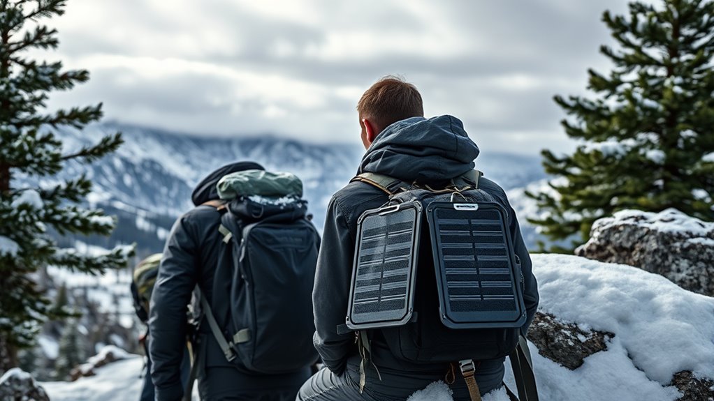 Cold weather can critically impact the performance of backpacking solar chargers, so choosing a model with high efficiency is indispensable. Solar panels made from monocrystalline silicon tend to perform better in low temperatures because they generate more power than other types. Since cold reduces overall output, selecting a charger with at least a 20% efficiency rating helps guarantee reliable energy production during winter. Snow and ice on the panels can block sunlight, so models that are foldable or tilt-adjustable make it easier to optimize exposure and clear off snow. Additionally, the lower angle of the sun in winter means adjustable panels are pivotal for capturing maximum sunlight. Higher efficiency and smart energy management features are essential to compensate for shorter daylight hours and weaker solar irradiance.
