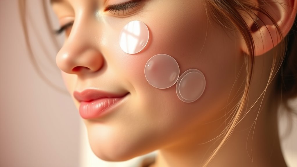 Opting for pimple patches that work effectively overnight guarantees you get the most out of your skincare routine. These patches continuously absorb pus and oil while you sleep, making them highly effective. The hydrocolloid material can draw out impurities within 6-8 hours, so applying them overnight maximizes their benefits. A good patch stays securely in place throughout the night, preventing rubbing off and maintaining a protective barrier. This ensures consistent contact with the blemish, boosting healing. Using patches overnight also reduces the temptation to pick at pimples, lowering the risk of scarring and irritation. With regular overnight use, you’ll notice faster healing and less prominent blemishes over time. It’s a simple way to enhance your skincare results effortlessly.